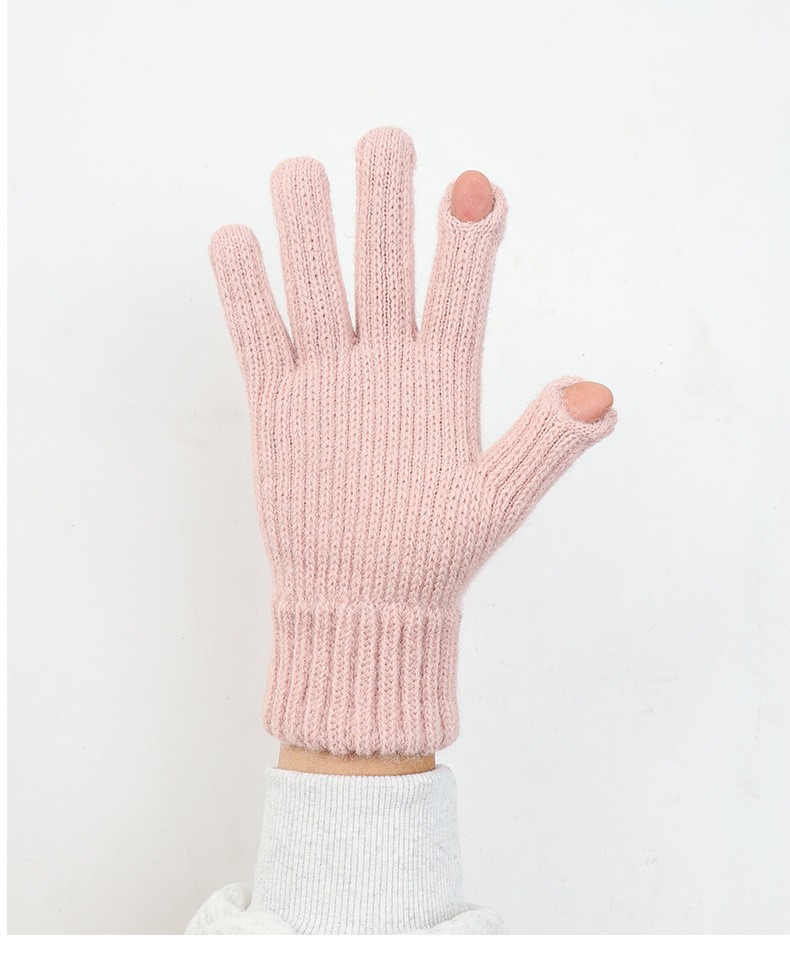 Womens Winter Warm Knit Touch Screen Thick Fleece 2-Finger Open Gloves Custom