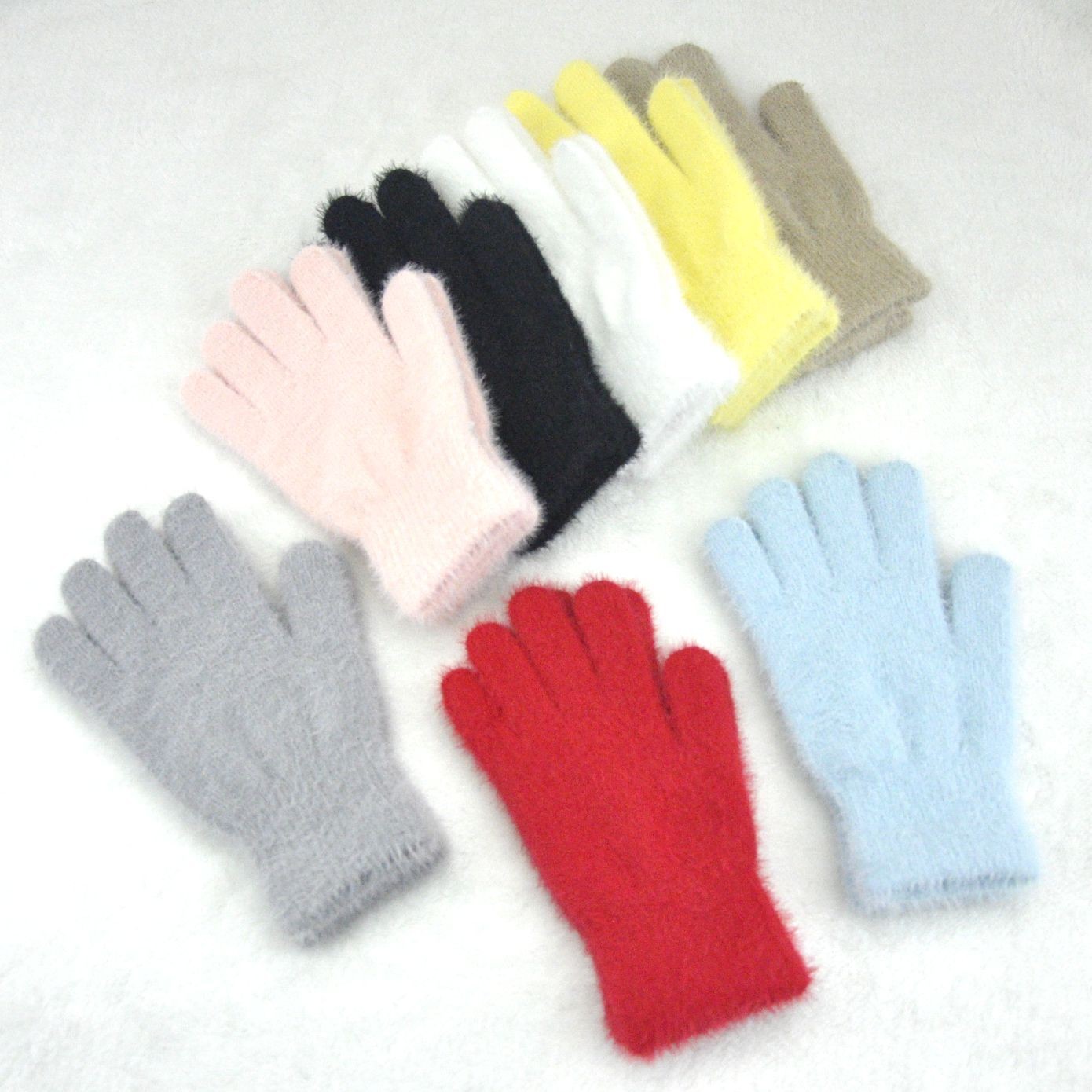 Womens Fuzzy Knit Winter Warm 5-Finger Windproof Gloves