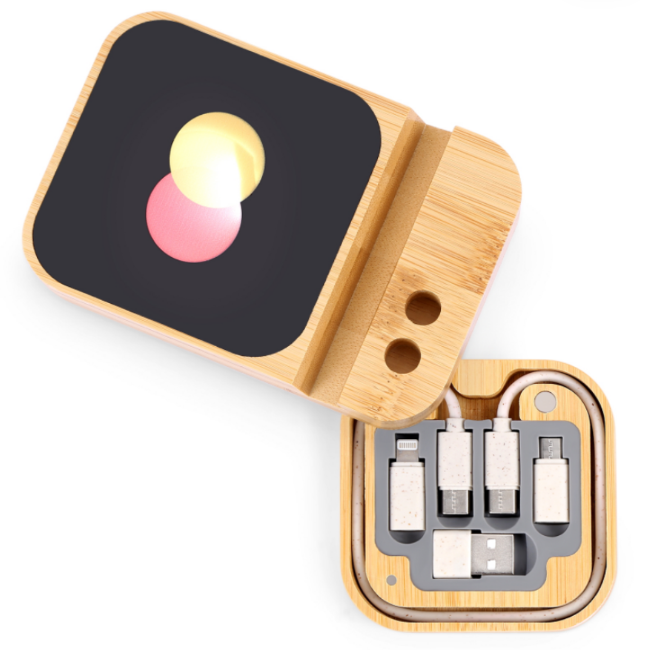 Office Desk Organizer Bamboo Wireless Charger 15W